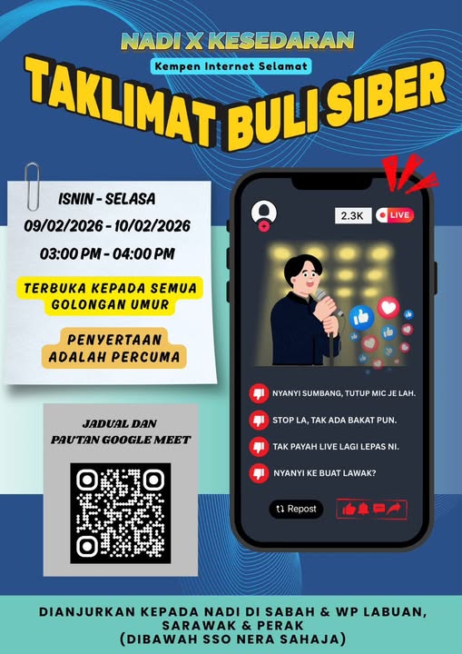 𝗡𝗔𝗗𝗜 𝗫 𝗞𝗘𝗦𝗘𝗗𝗔𝗥𝗔𝗡 𝗙𝗘𝗕𝗥𝗨𝗔𝗥𝗜 | 𝗧𝗔𝗞𝗟𝗜𝗠𝗔𝗧 𝗕𝗨𝗟𝗜 𝗦𝗜𝗕𝗘𝗥 Mari tingkatkan kesedaran dan menjadi pengguna internet yang lebih beretika serta bertanggungjawab. Isnin – Selasa | 9 – 10 Februari 2026 3.00 […]