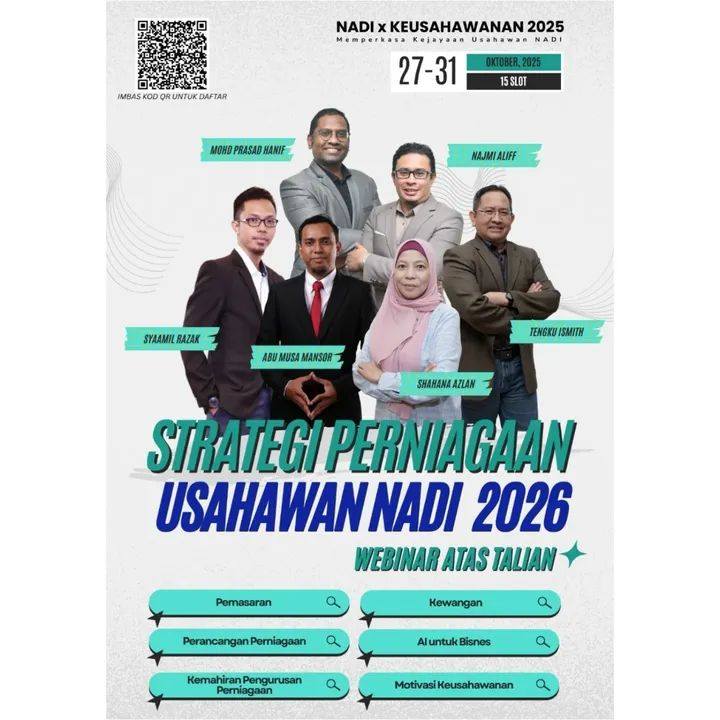 Sertai siri Webinar Strategi Perniagaan Usahawan NADI 2026 yang menghimpunkan barisan penceramah hebat dan berpengalaman dalam dunia keusahawanan!